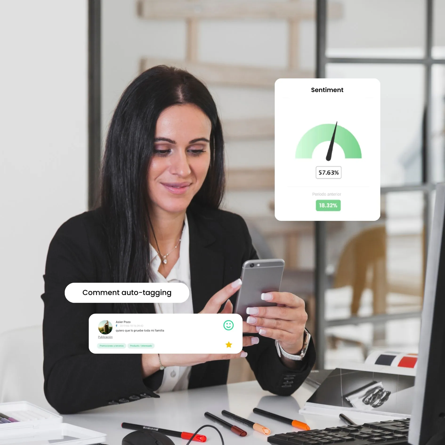 Nuestra solución de sentiment analysis y gestión de comunidades ayuda a los equipos de marketing a administrar conversaciones desde un único panel.