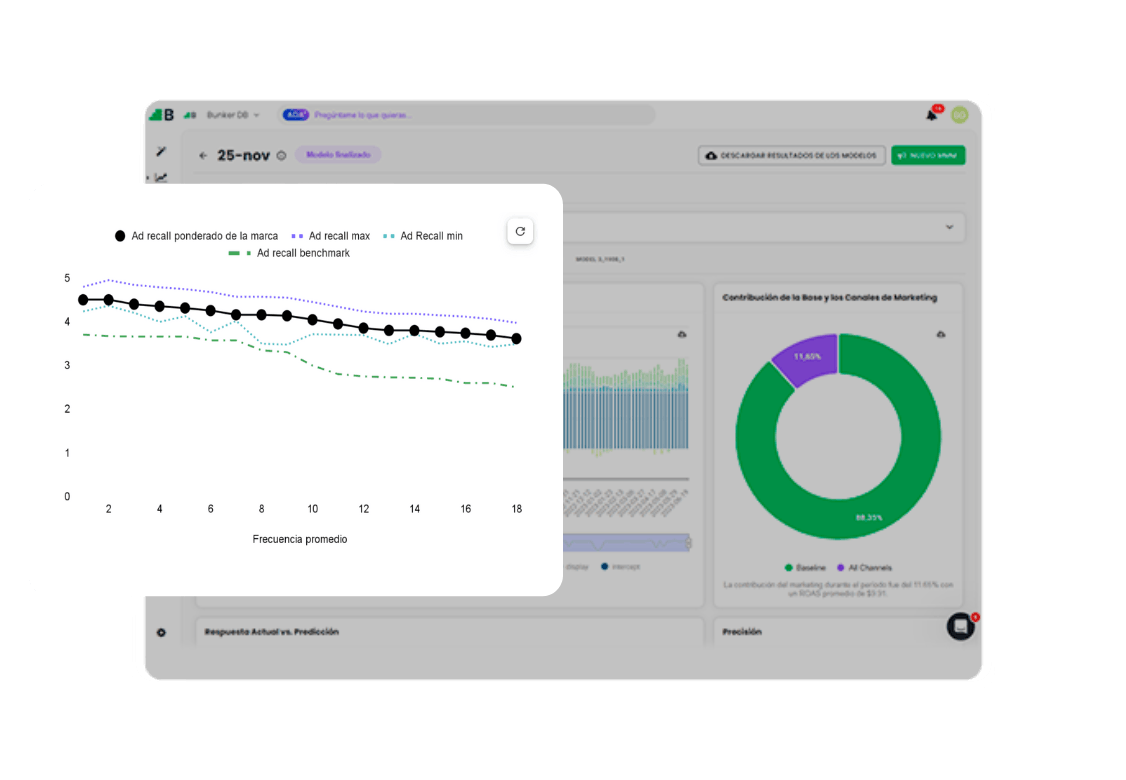 We evaluate your ad attention and recall metrics based on average frequency to identify levels of fatigue and recall.