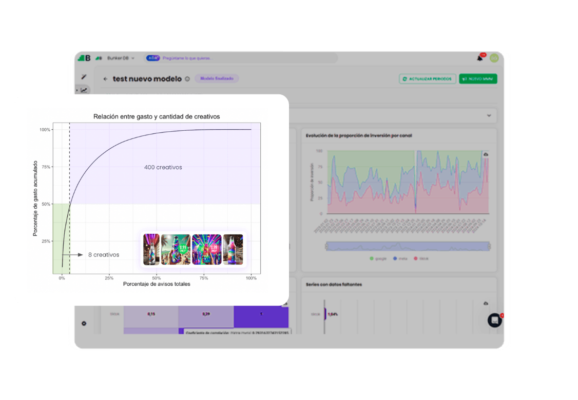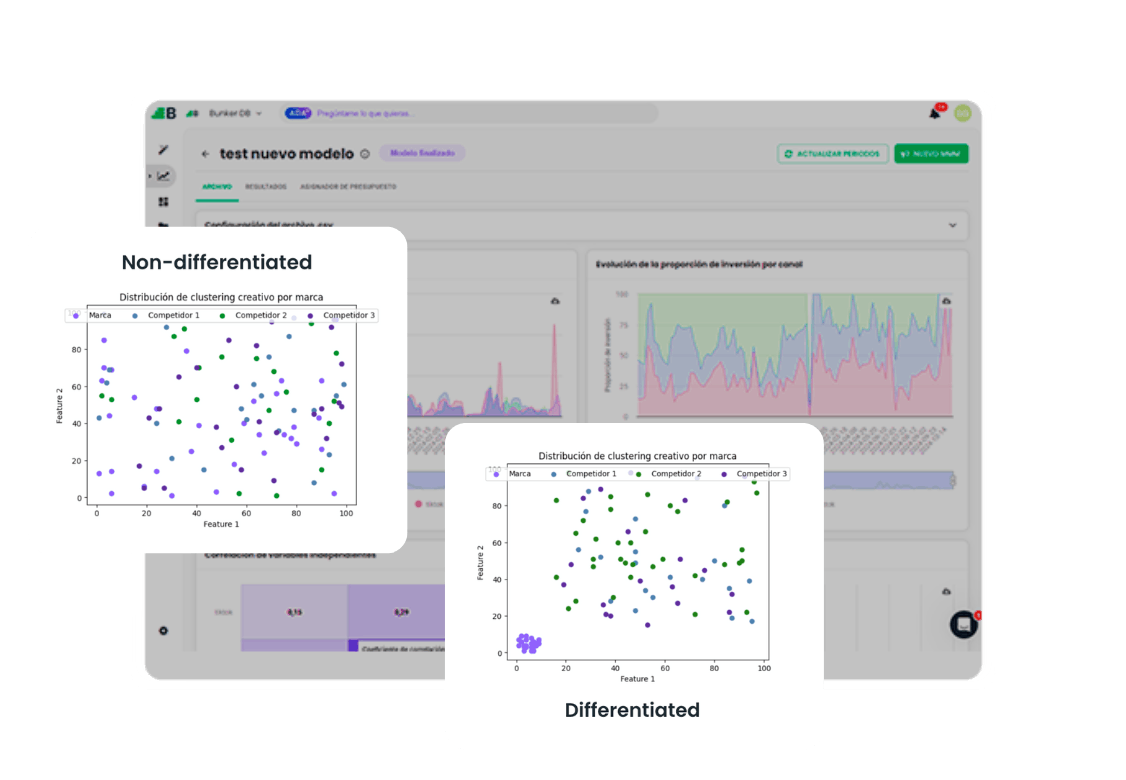 Bunker DB's creative audit is an essential resource for building optimization and continuous improvement agendas for marketing teams and agencies. It gives you clarity on which pieces really work, with which audiences, and why. It's not just about seeing, but about understanding what generates impact. Less trial and error. More validated creative results.