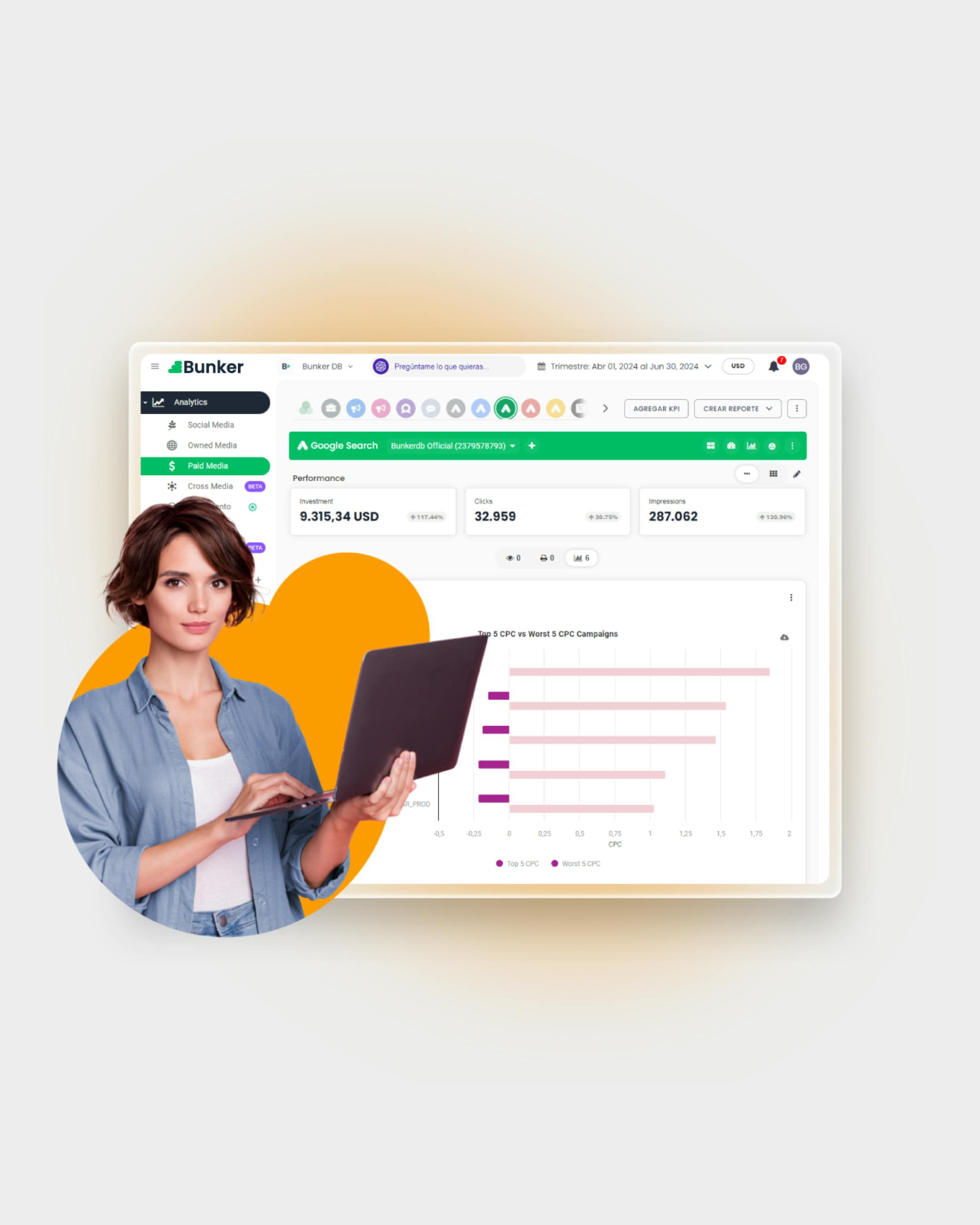 Desde el onboarding hasta la optimización continua, nuestro equipo de Customer Care te guía para que aproveches al máximo la plataforma. Contás con especialistas en marketing digital y herramientas de marketing analytics que trabajan a tu lado para que domines cada funcionalidad y puedas tomar decisiones basadas en datos desde el primer día.