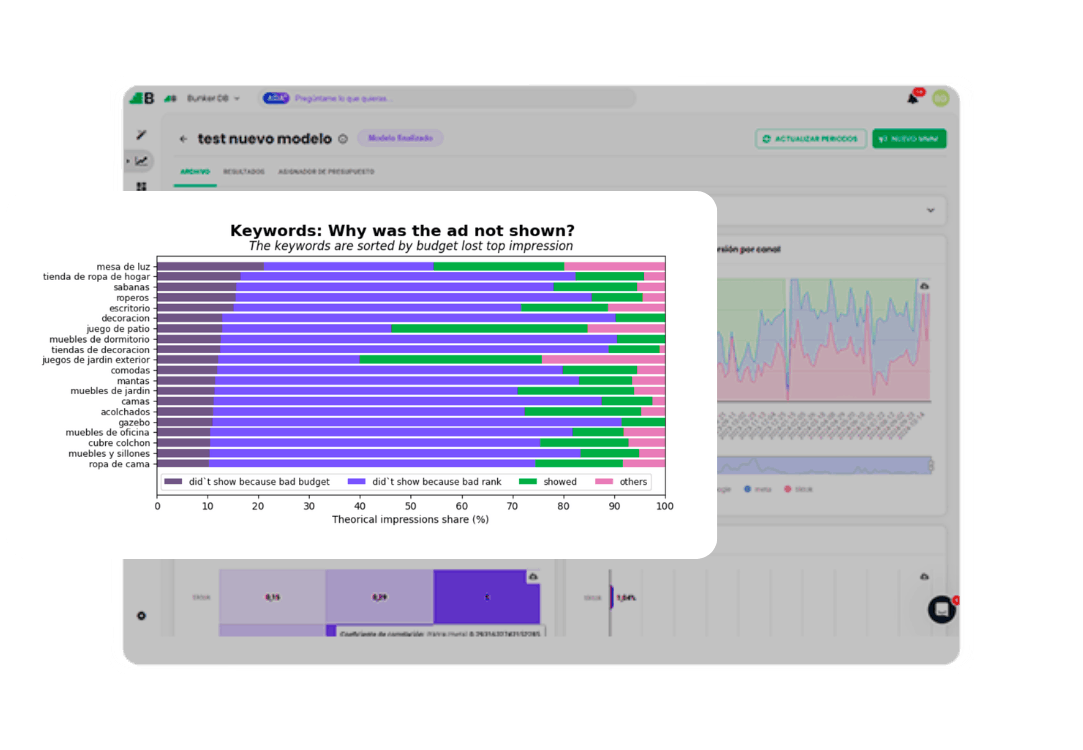 Identifica las razones por las cuales los anuncios no se mostraron en buscadores, detectando oportunidades de optimización en la estrategia de pauta digital.