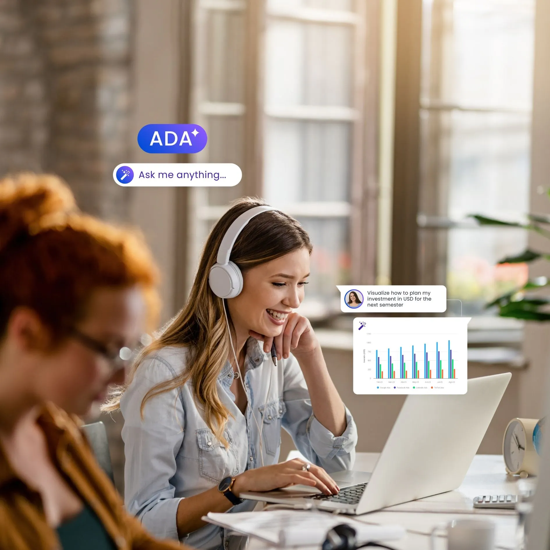 Descubre ADA AI, nuestra solución integrada de inteligencia artificial para interactuar con tus datos en lenguaje natural y generar insights accionables. Crea gráficos, reportes y análisis de campañas con tu marketing data para decidir con velocidad y precisión.