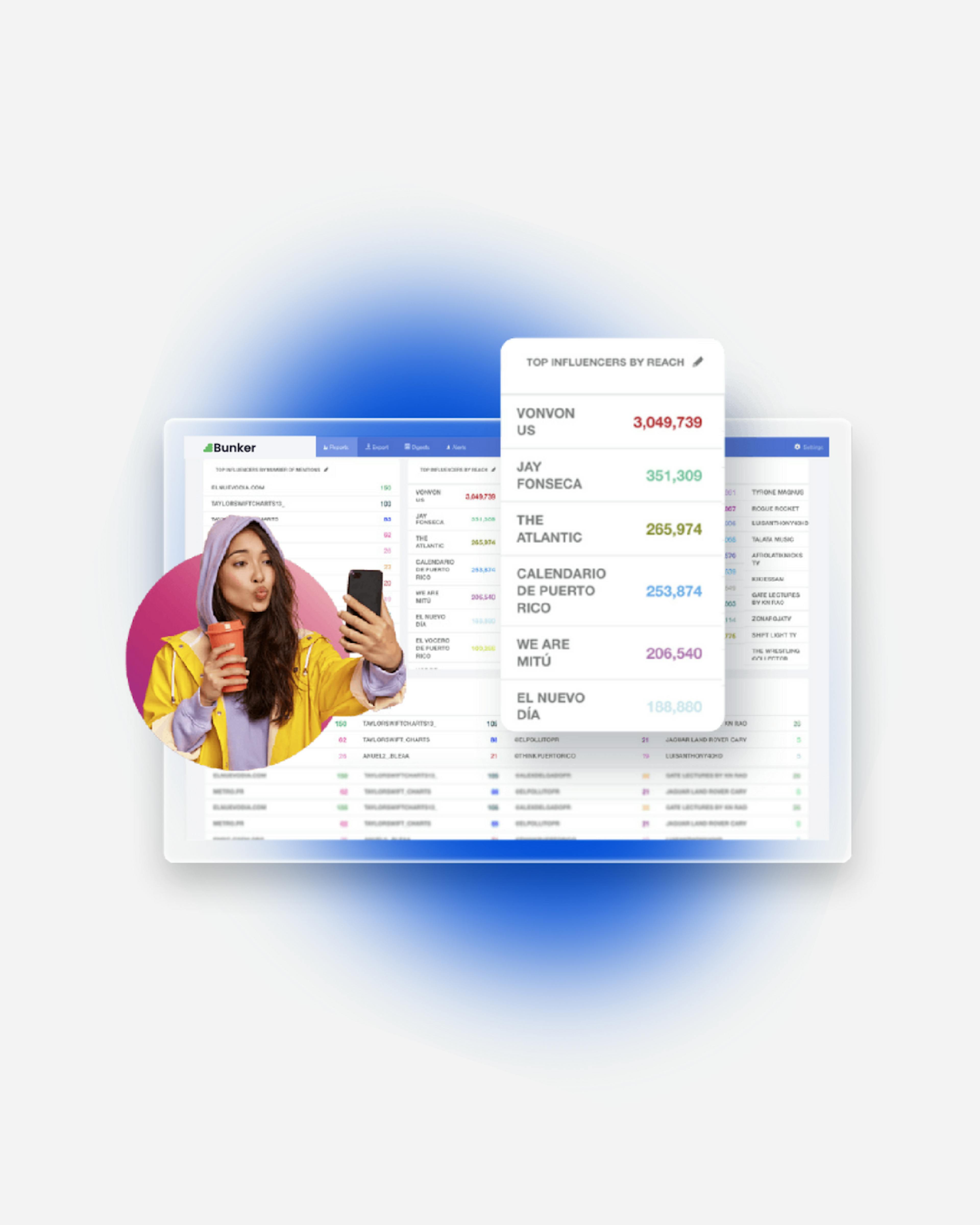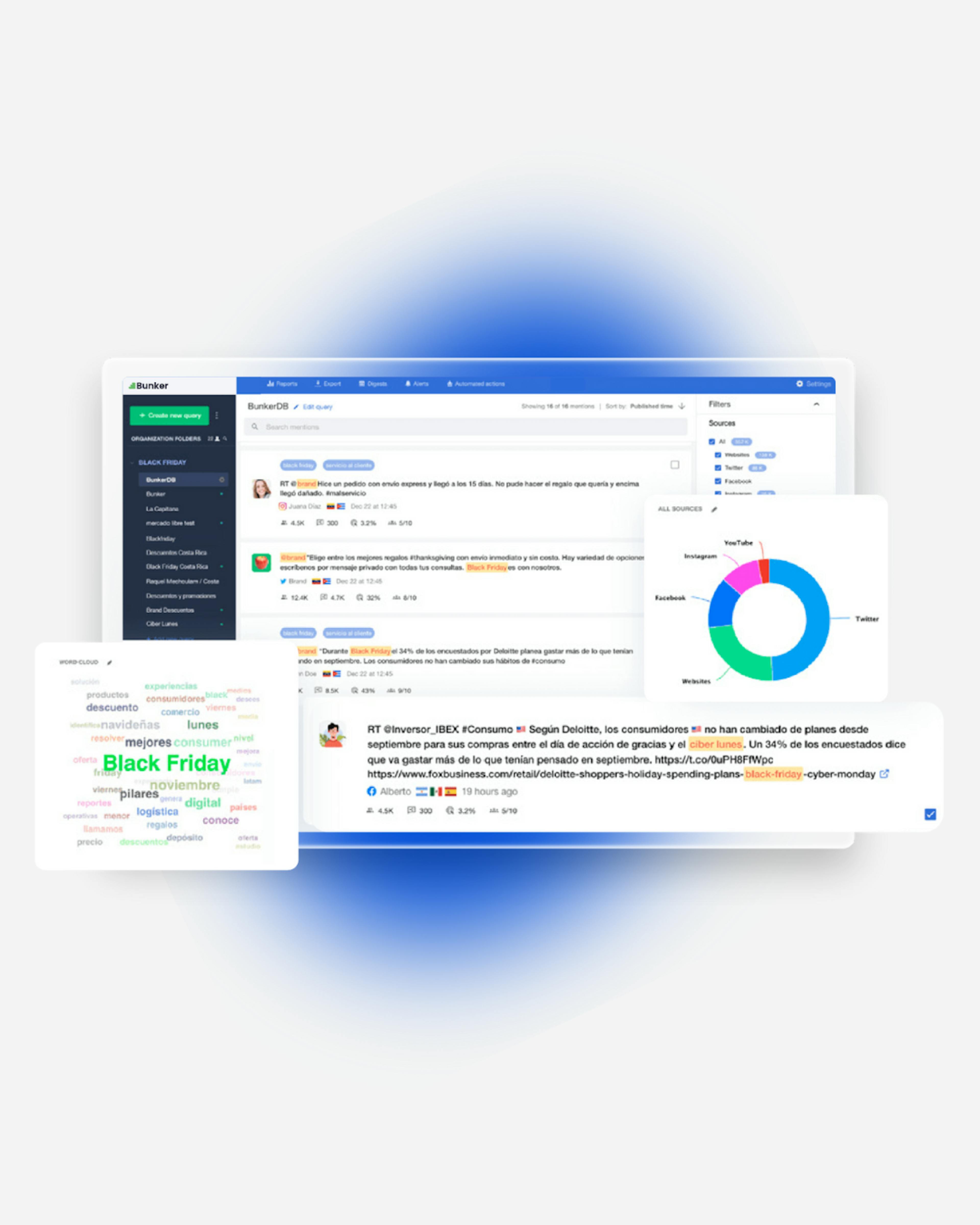 Rastrea millones de fuentes online y configurá búsquedas personalizadas con las palabras clave que más te interesen. Detecta menciones relevantes en cualquier idioma y en tiempo real.