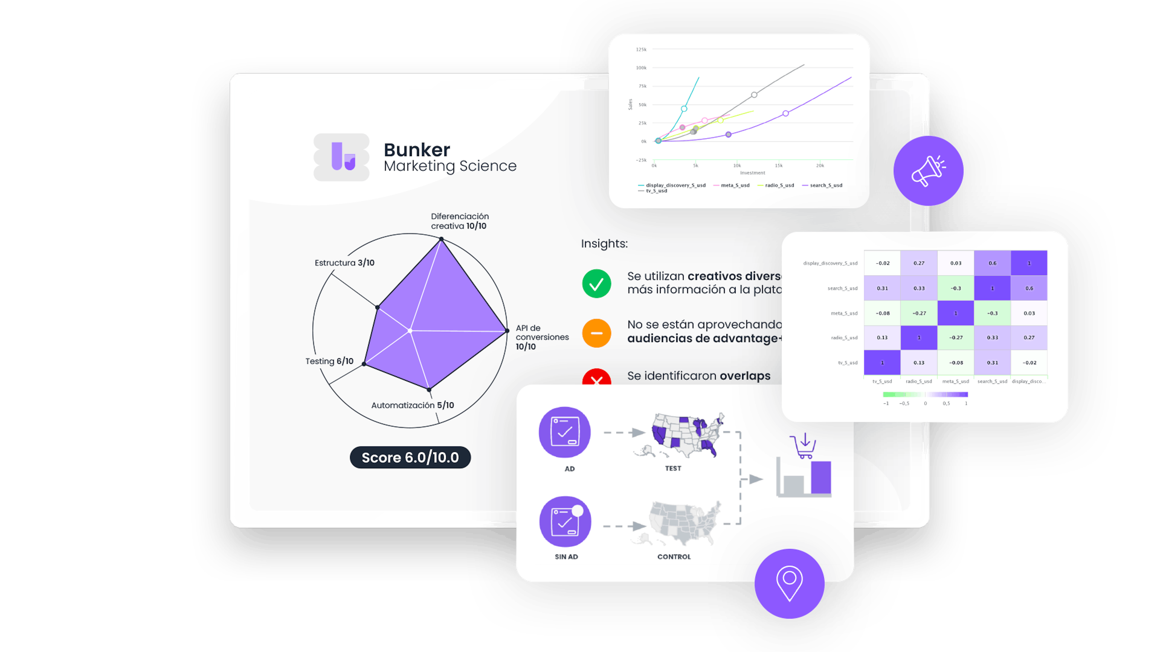 Funciona tanto para campañas digitales como tradicionales, permitiéndote calcular el incremento real en ventas, tráfico o leads generado por tu inversión publicitaria. El valor está en tener evidencia causal, más allá de la correlación: demostrar de manera científica qué funciona y qué no.